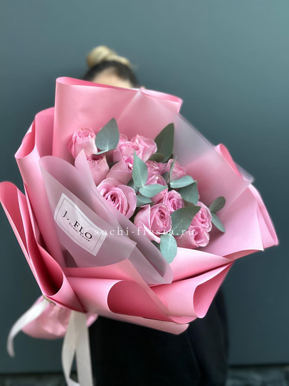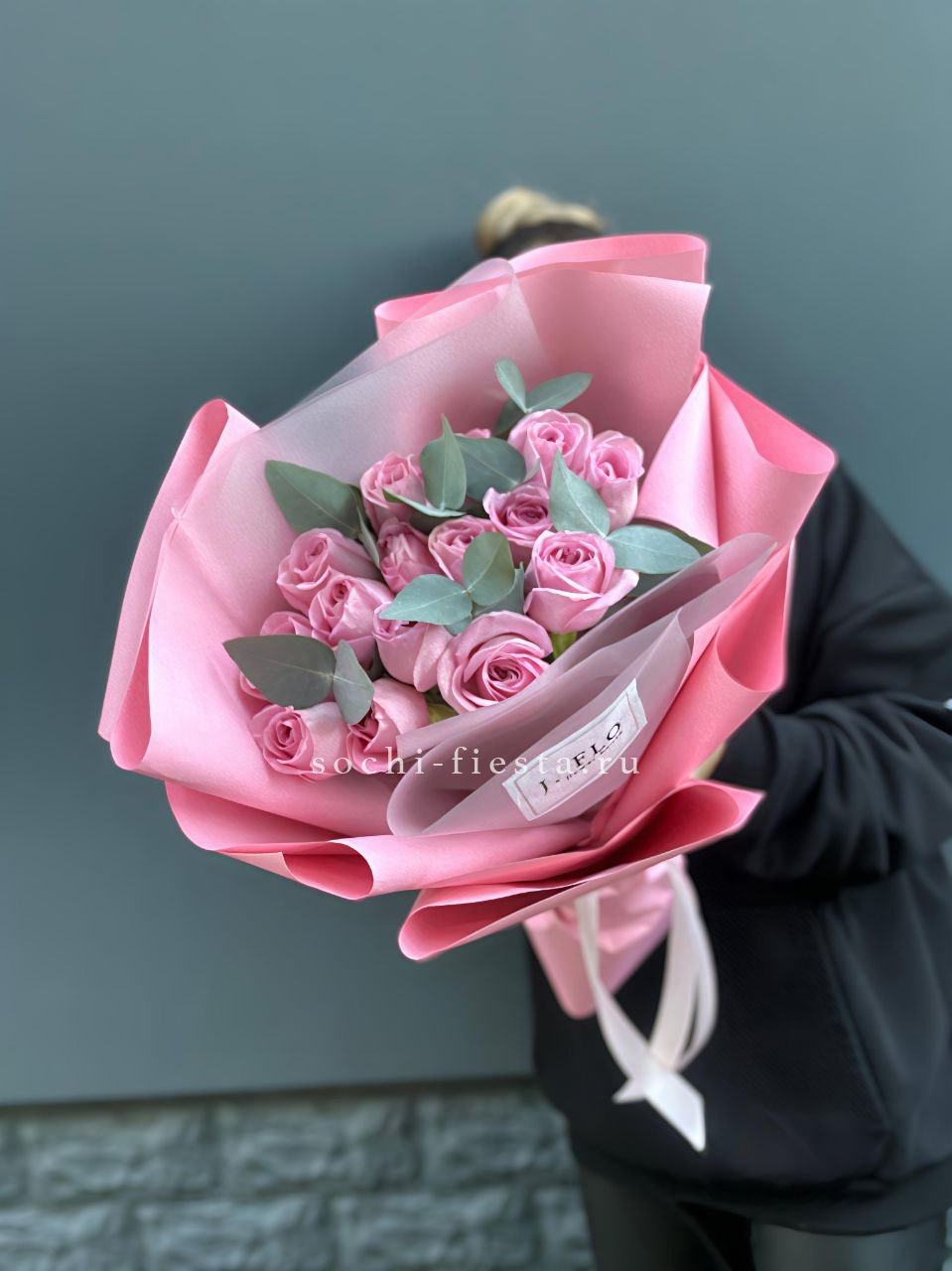 Семнадцать бутонов с лавандовым оттенком собраны в плотную композицию. Мисти Баблс раскрывается постепенно и долго сохраняет свежесть.