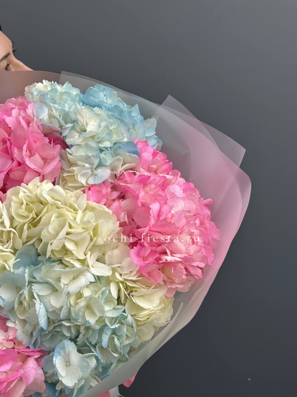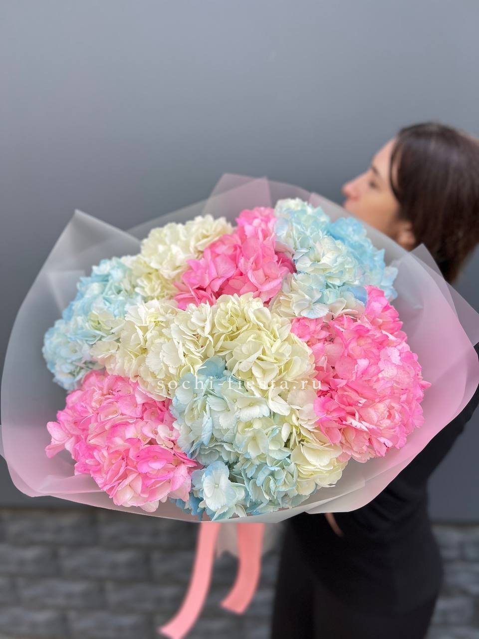 гортензия - 9 шт., лента, дизайнерская упаковка.