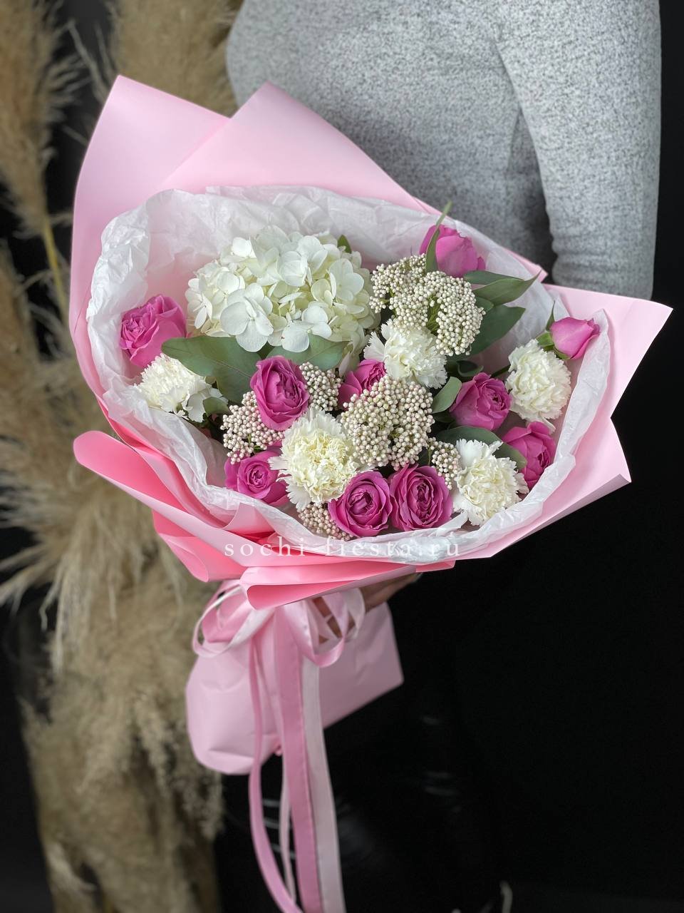 Мы работаем только со свежими цветами — букеты радуют от 7 до 14 дней и дольше при правильном уходе.