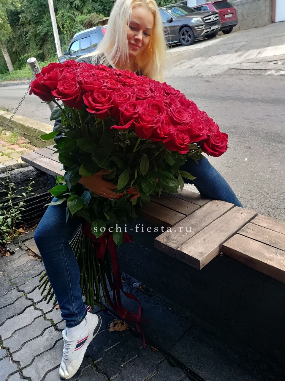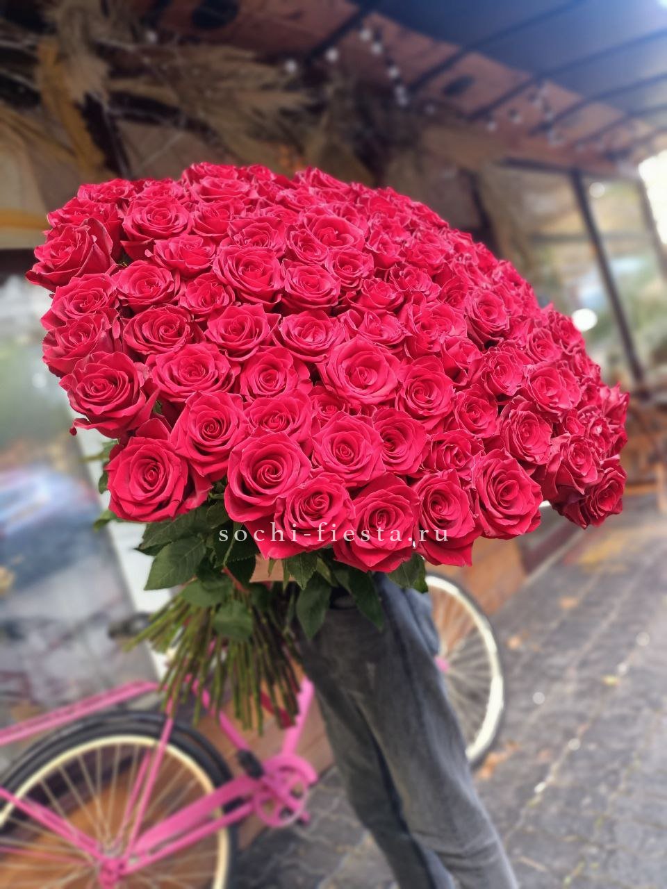 Изначальная цена указана за букет из 15 роз Состав букета на фотографии: 21 кенийских роз, лента, упаковка.