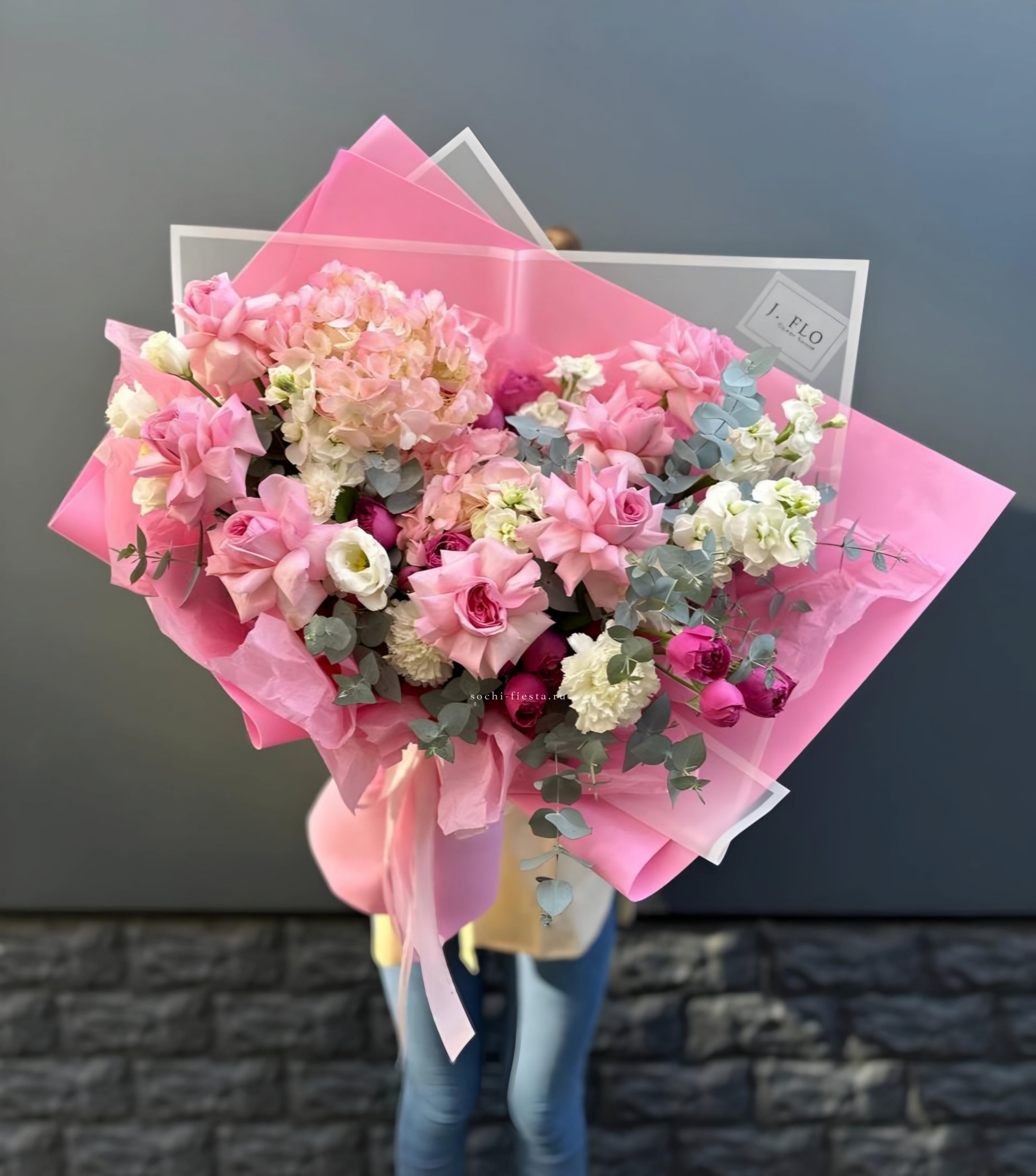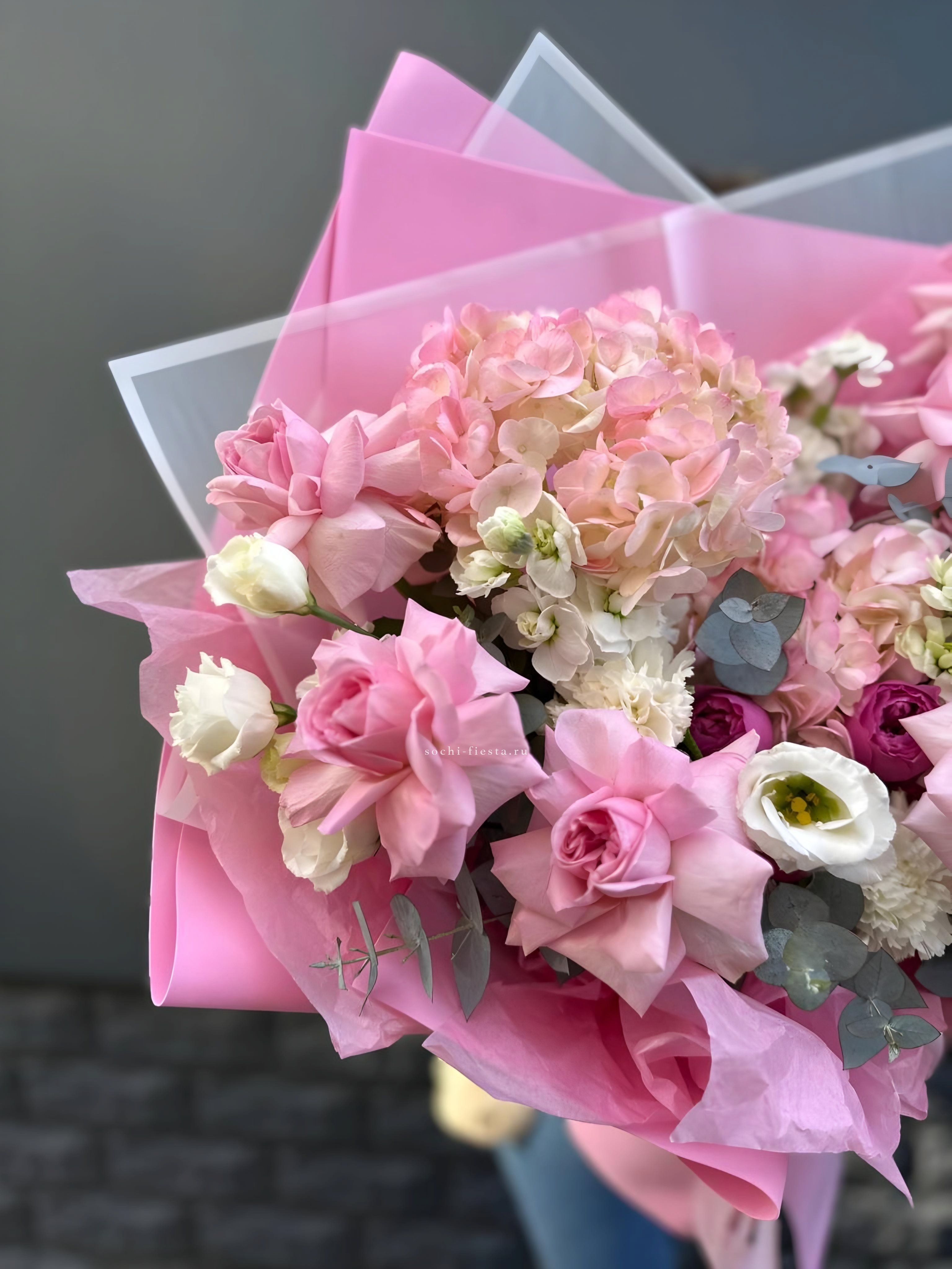 гортензия, озотамнус (или аналог сезона), мисти бабблс, диантус, авторское оформление.