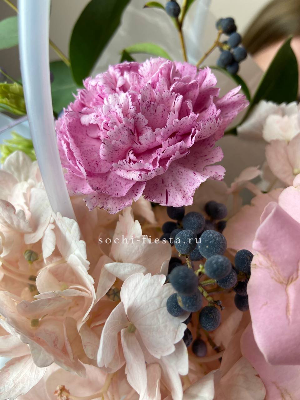 мисти бабблс, диантусы нежных оттенков, эвкалипт, авторское оформление.