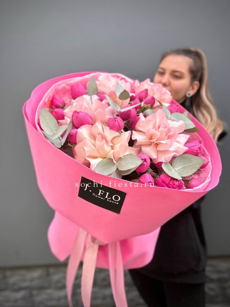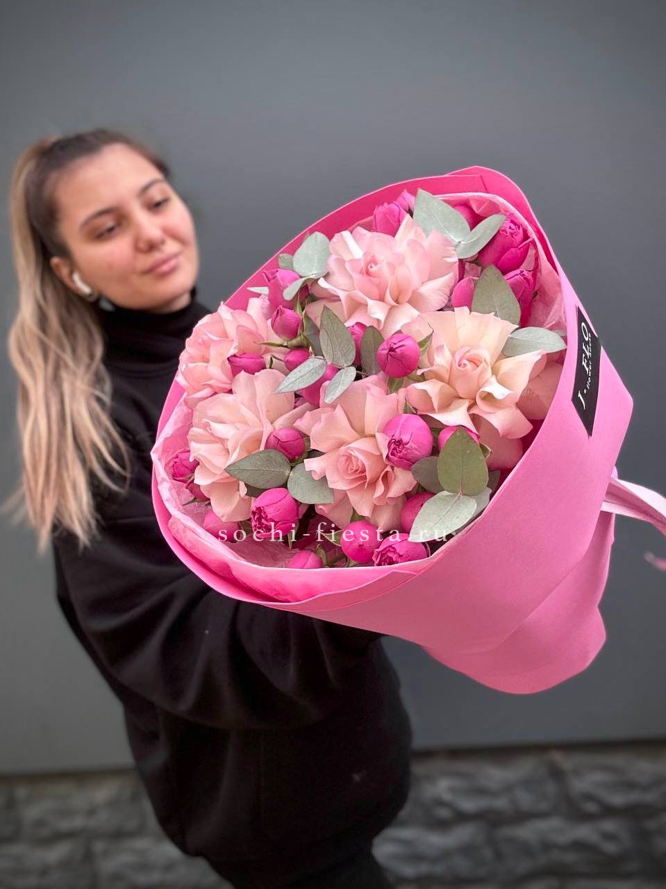Для заказа товара "Букет французских и пионовидных роз "Ламиносо"" с доставкой в Петрозаводске нажмите в корзину
