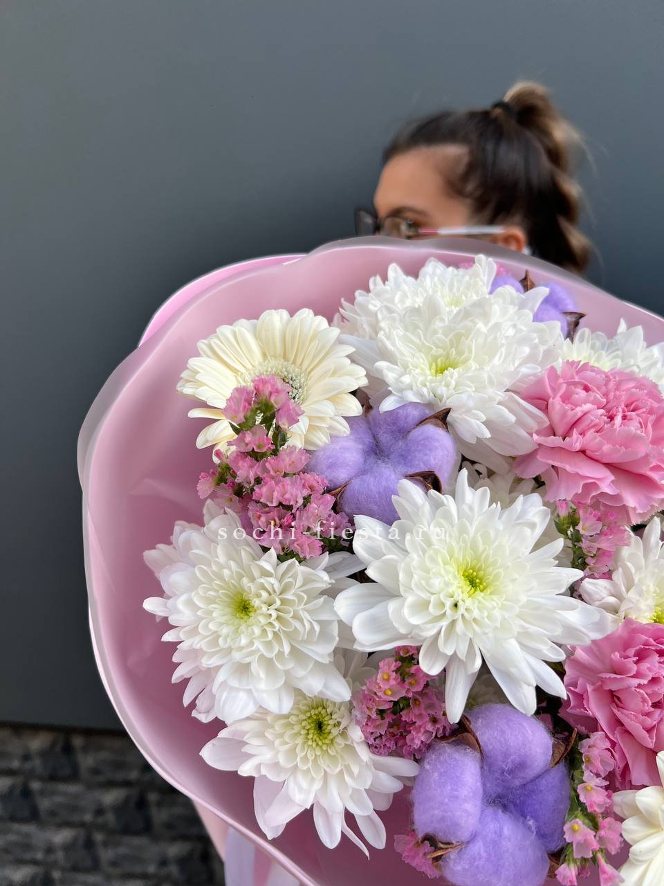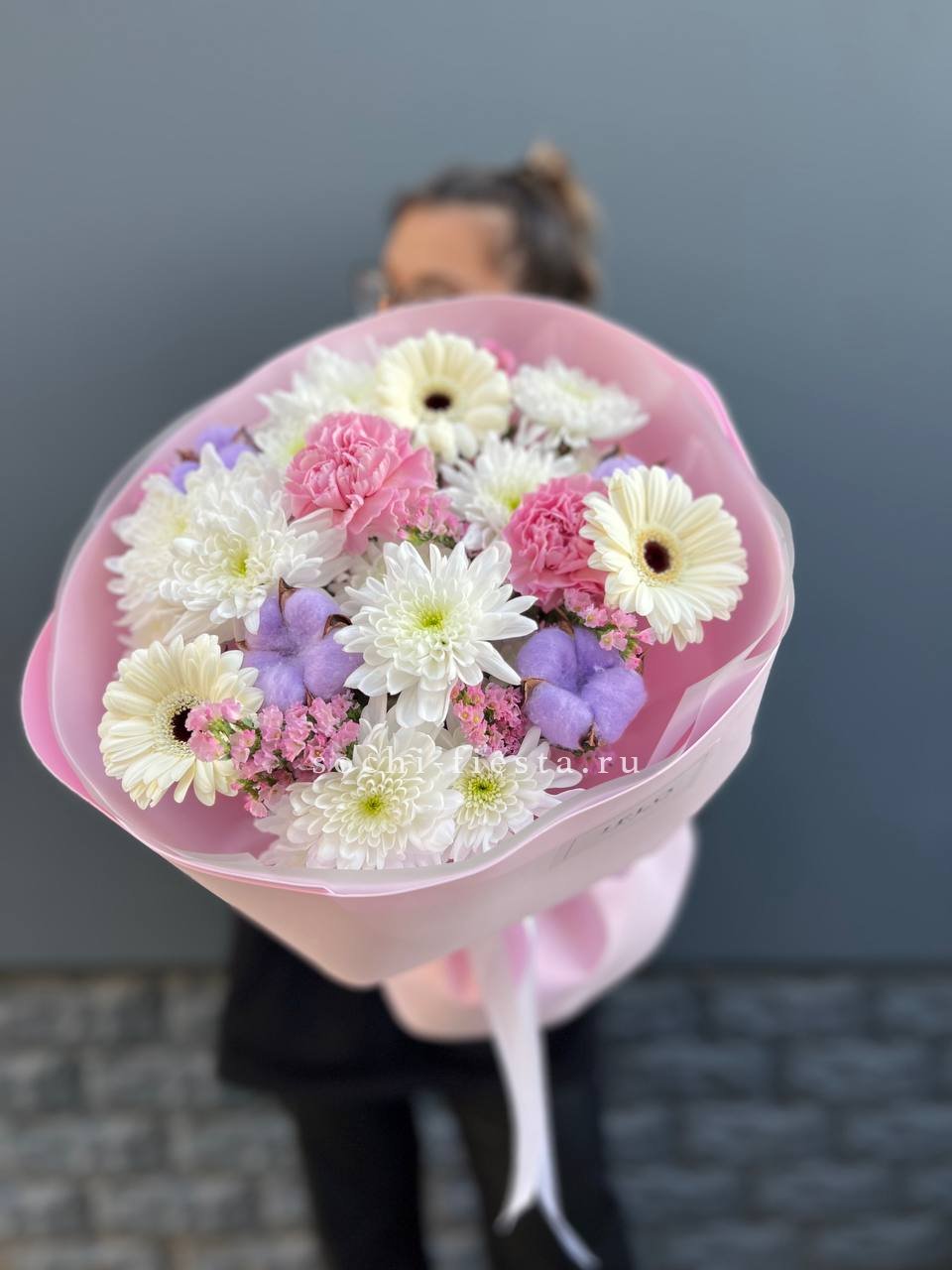 джумилия, хризантема, антиринум, диантус, мисти баблс, упаковка.
