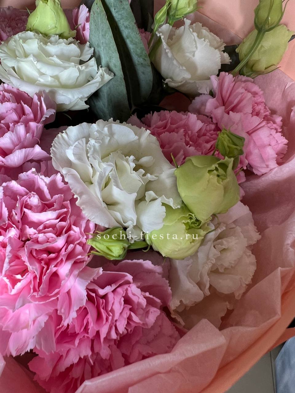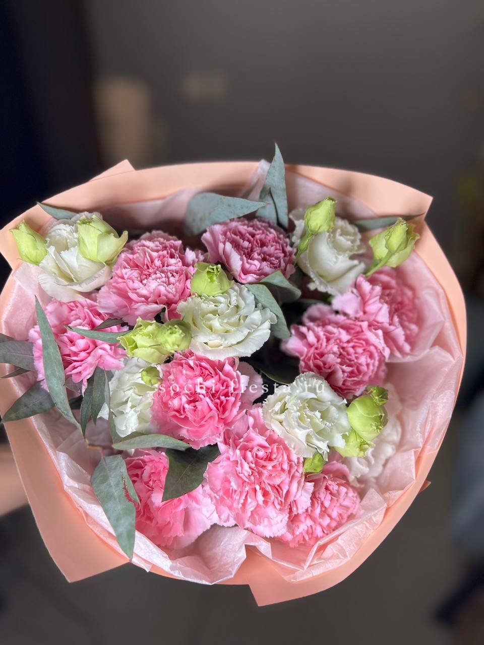 Для заказа товара "Букет гвоздик и эустом "Сири"" с доставкой в Петрозаводске нажмите в корзину