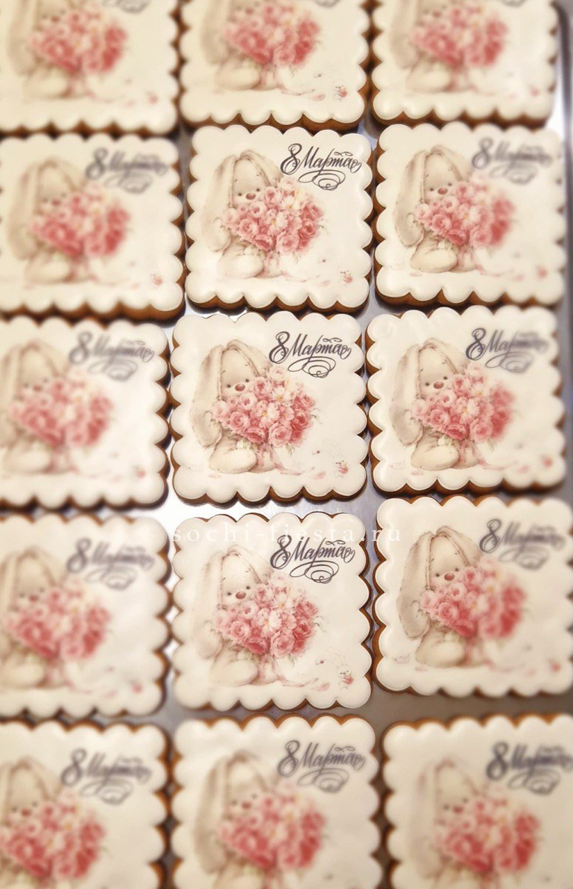 Имбирное печенье с праздничным декором в честь весеннего дня. Ароматная выпечка с авторской росписью дополнит любой подарок тёплой нотой и душевным вниманием.