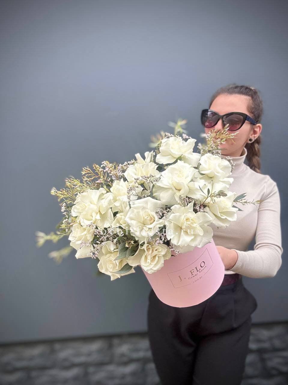 Для заказа товара "17 Французских белых роз в коробке Афина" с доставкой в Петрозаводске нажмите в корзину