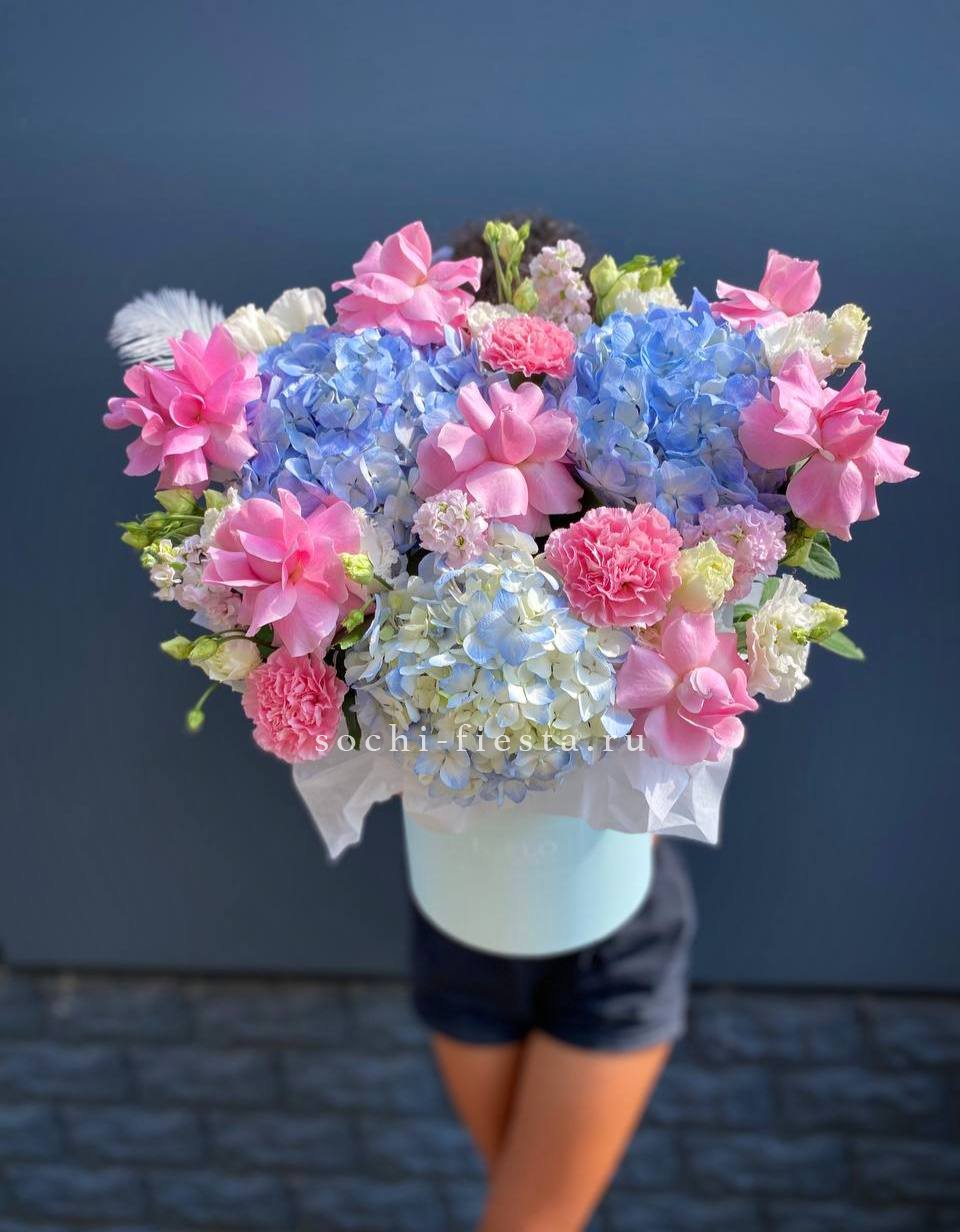 мисти баблс, гортензия, розовая роза, коробка размер 16D.