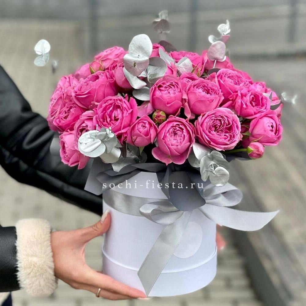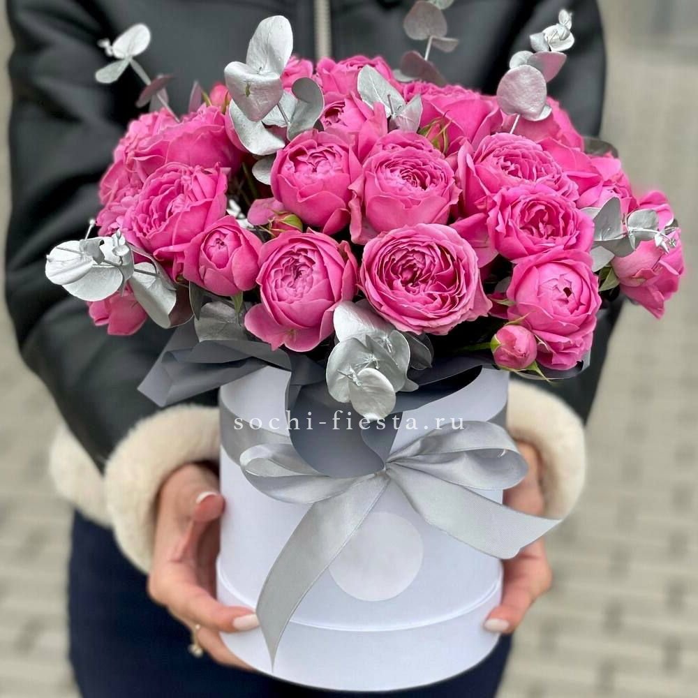пионовидные кустовые розы бомбастик, гортензия, оазис, тишью, лента.