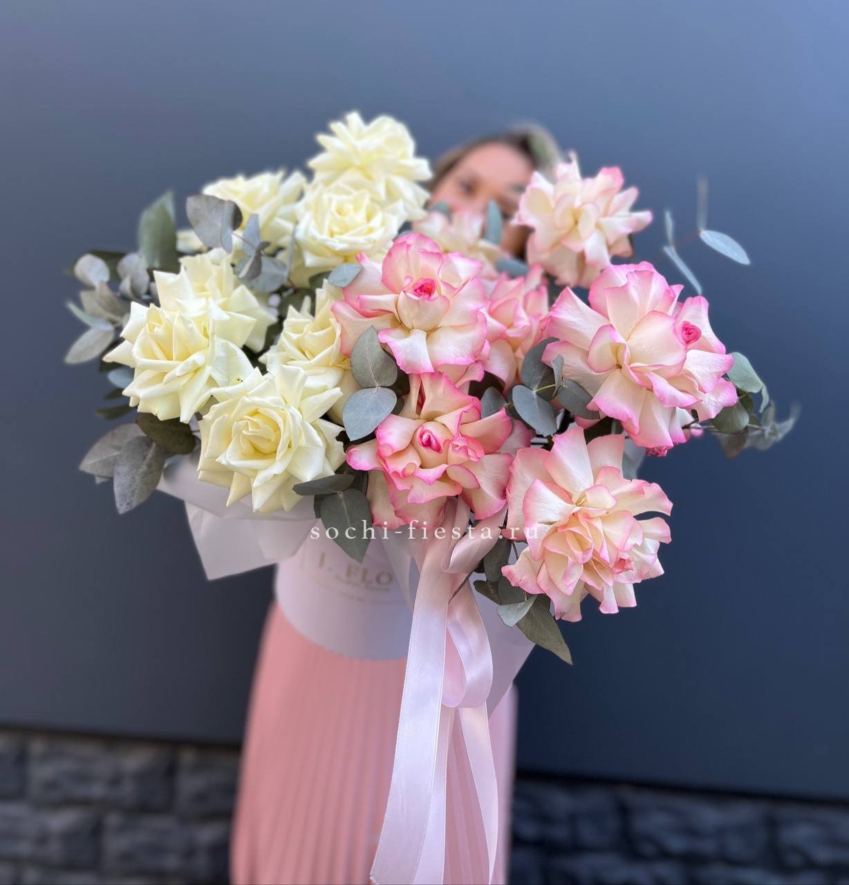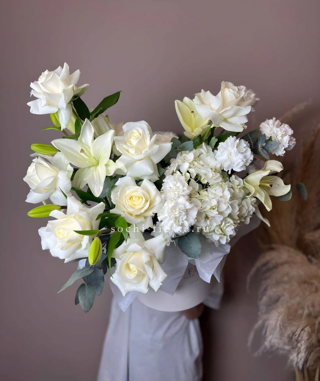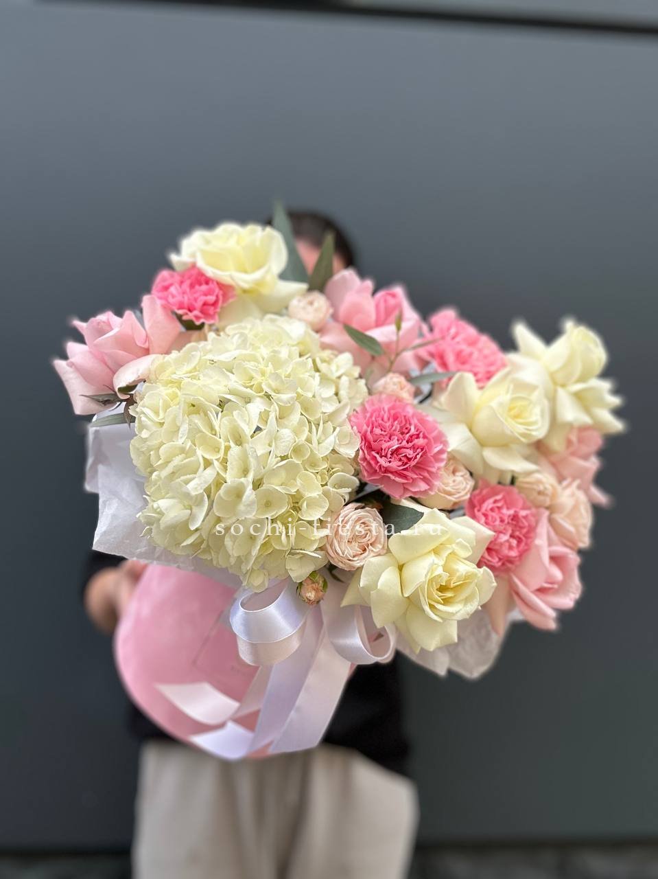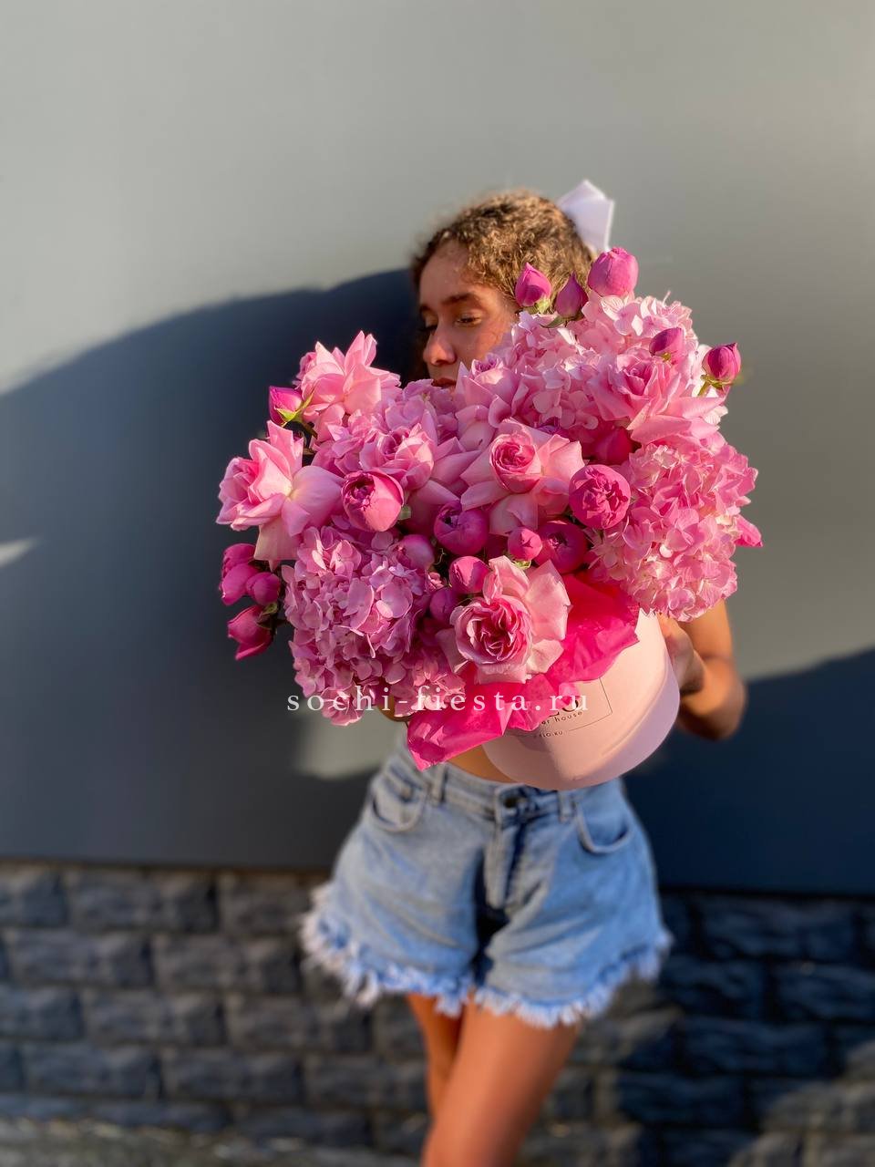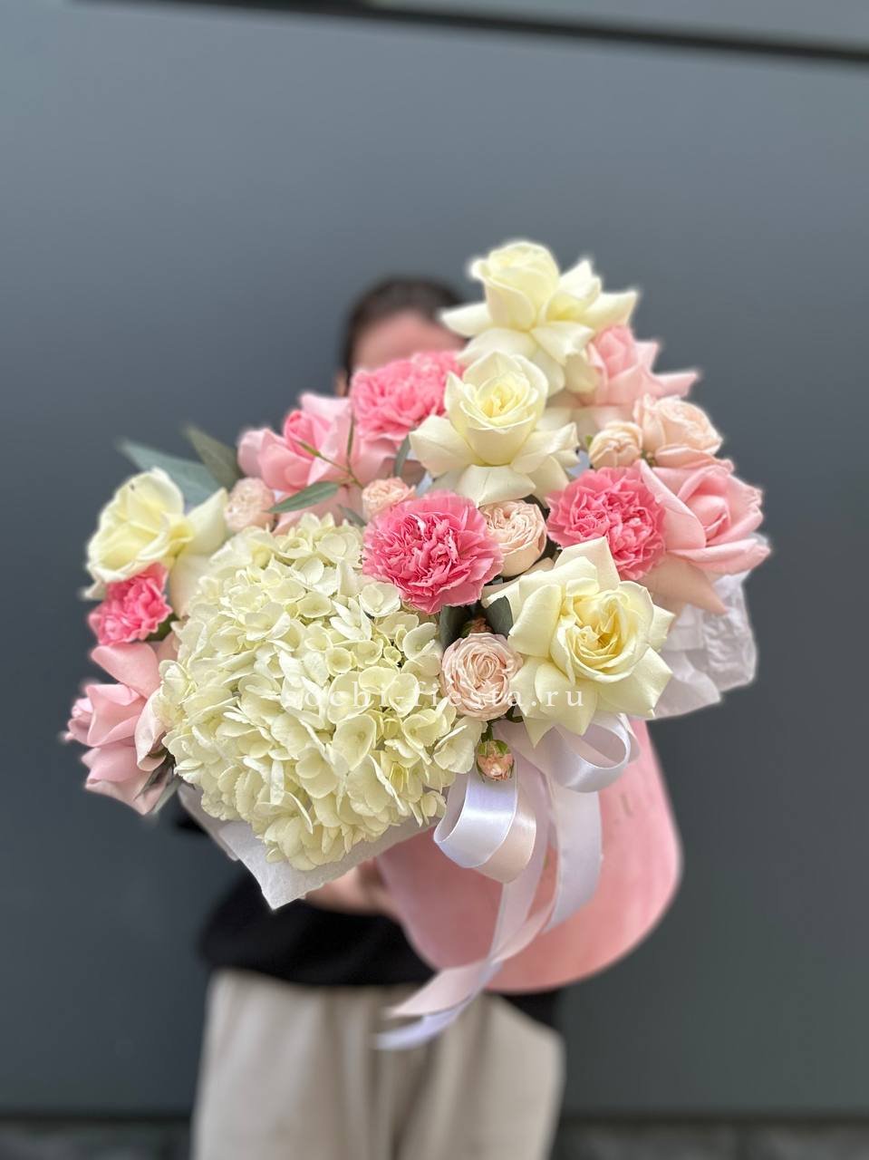 гортензия, диантус, бомбастик, мисти баблс, розы, антиринум, эустома, бокс гигант.