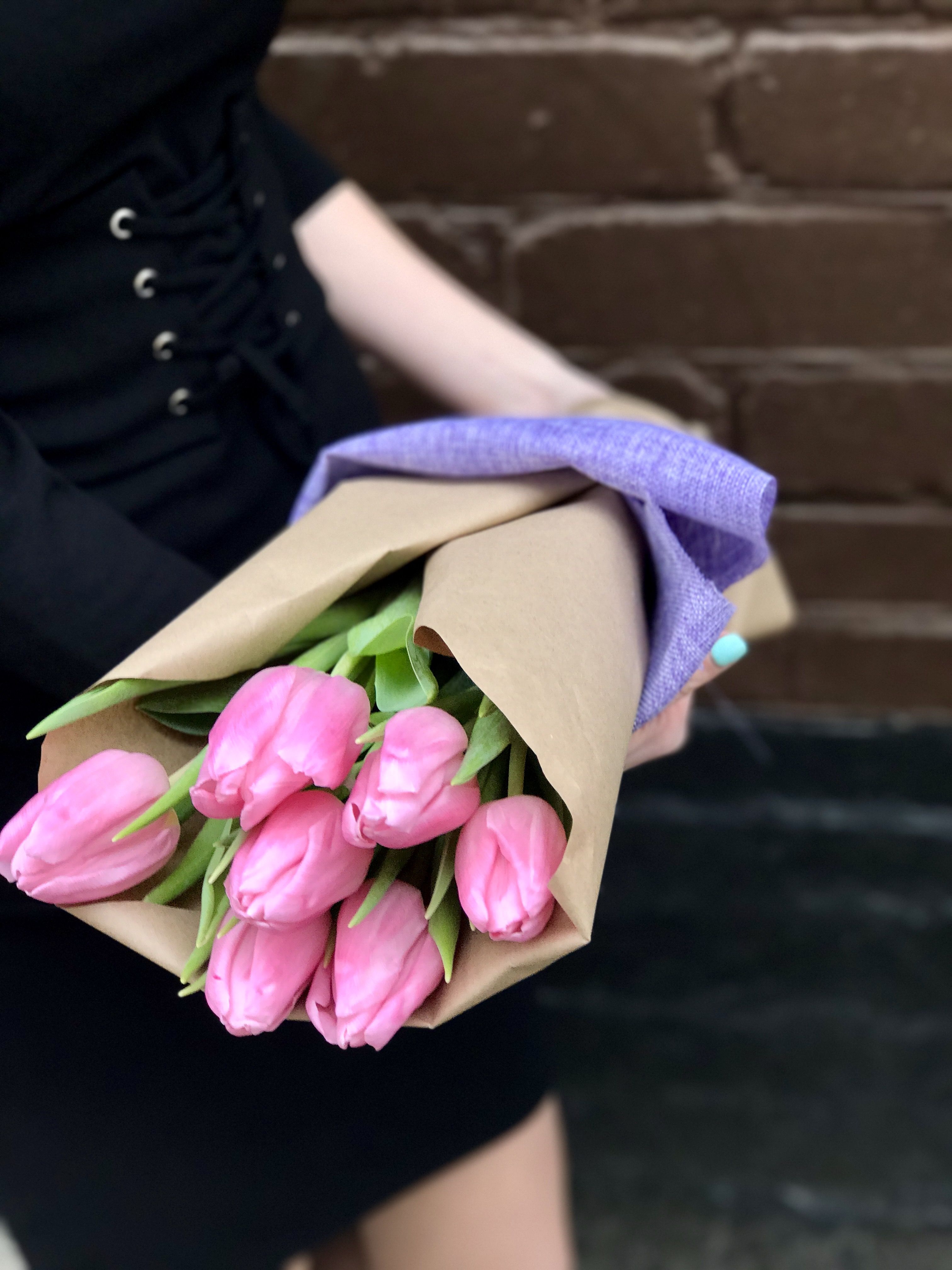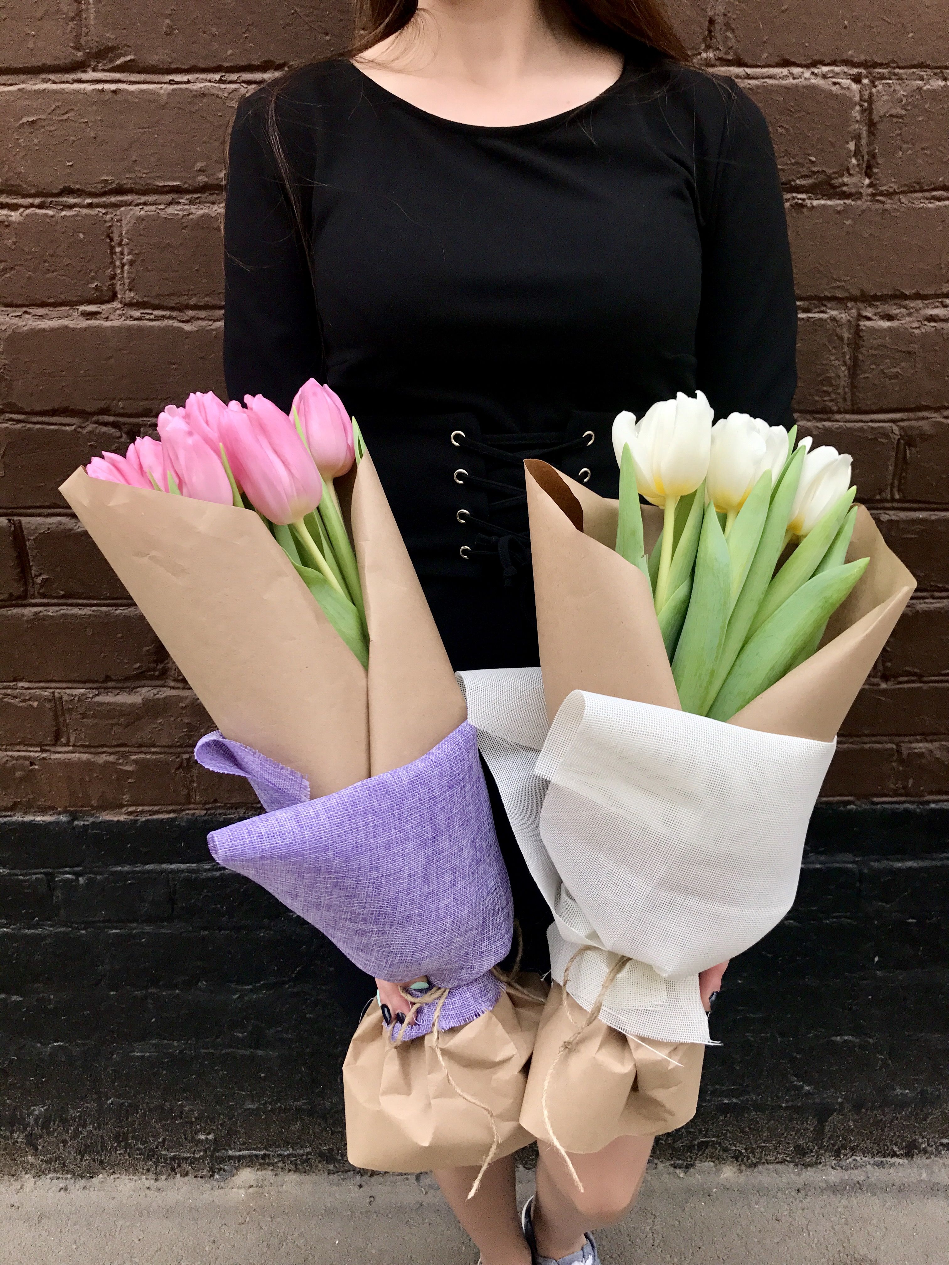 11 тюльпанов, дизайнерская упаковка. Вы можете указать желаемый цвет тюльпанов при оформлении заказа. Данная цена доступна при единовременном заказе от 10 шт.