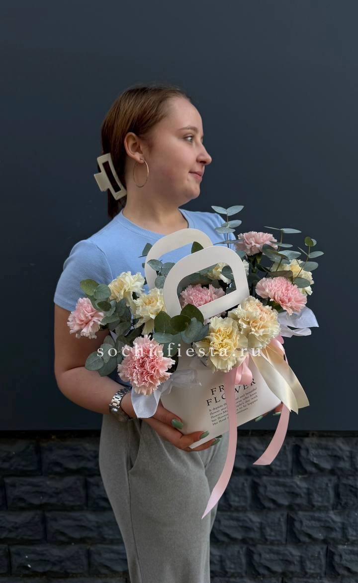 диантусы 15шт, тишью, упаковка, лента.