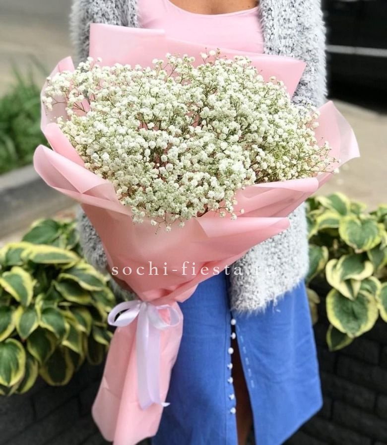 5 радужных голландских гипсофил, лента, комбинированная упаковка.