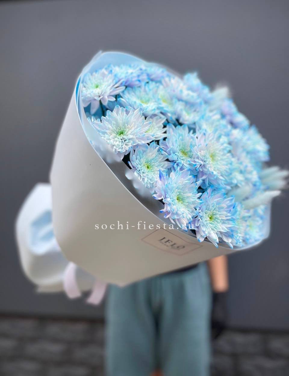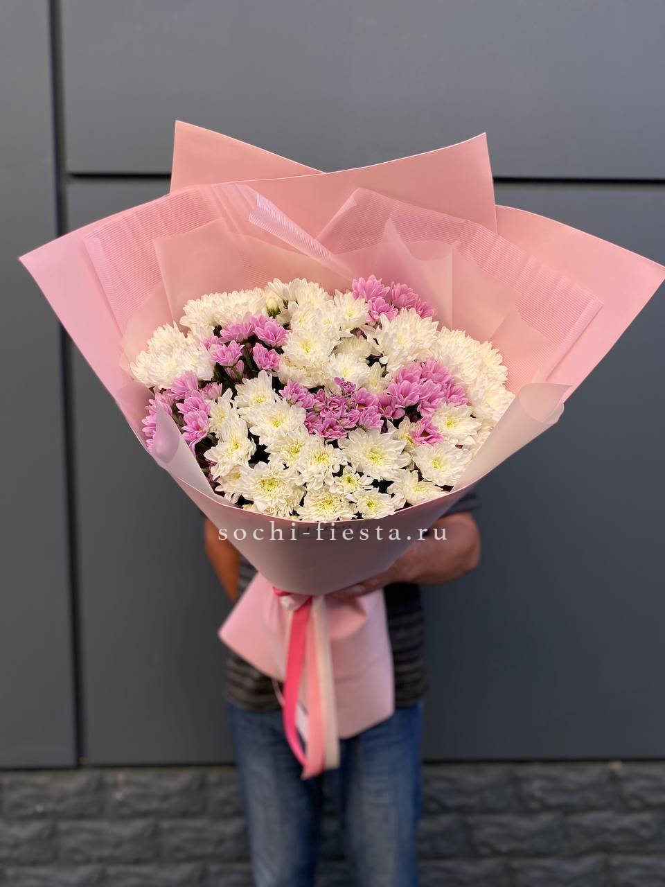 Сто одна хризантема формирует воздушное облако с мягким ритмом бутонов. Объемная композиция держит форму и наполняет пространство легким присутствием.