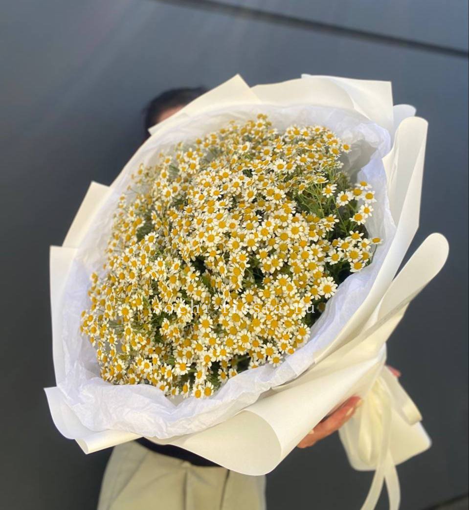 ромашки (танацетум камилла) - 25 веток, лента, упаковка.