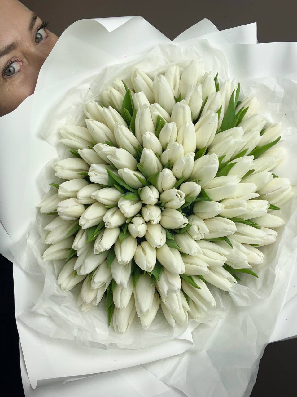 Для заказа товара "101 белый тюльпан №2" с доставкой в Петрозаводске нажмите в корзину