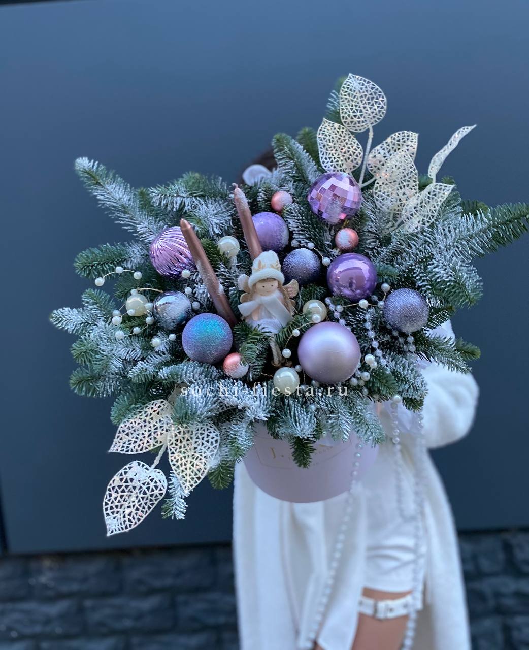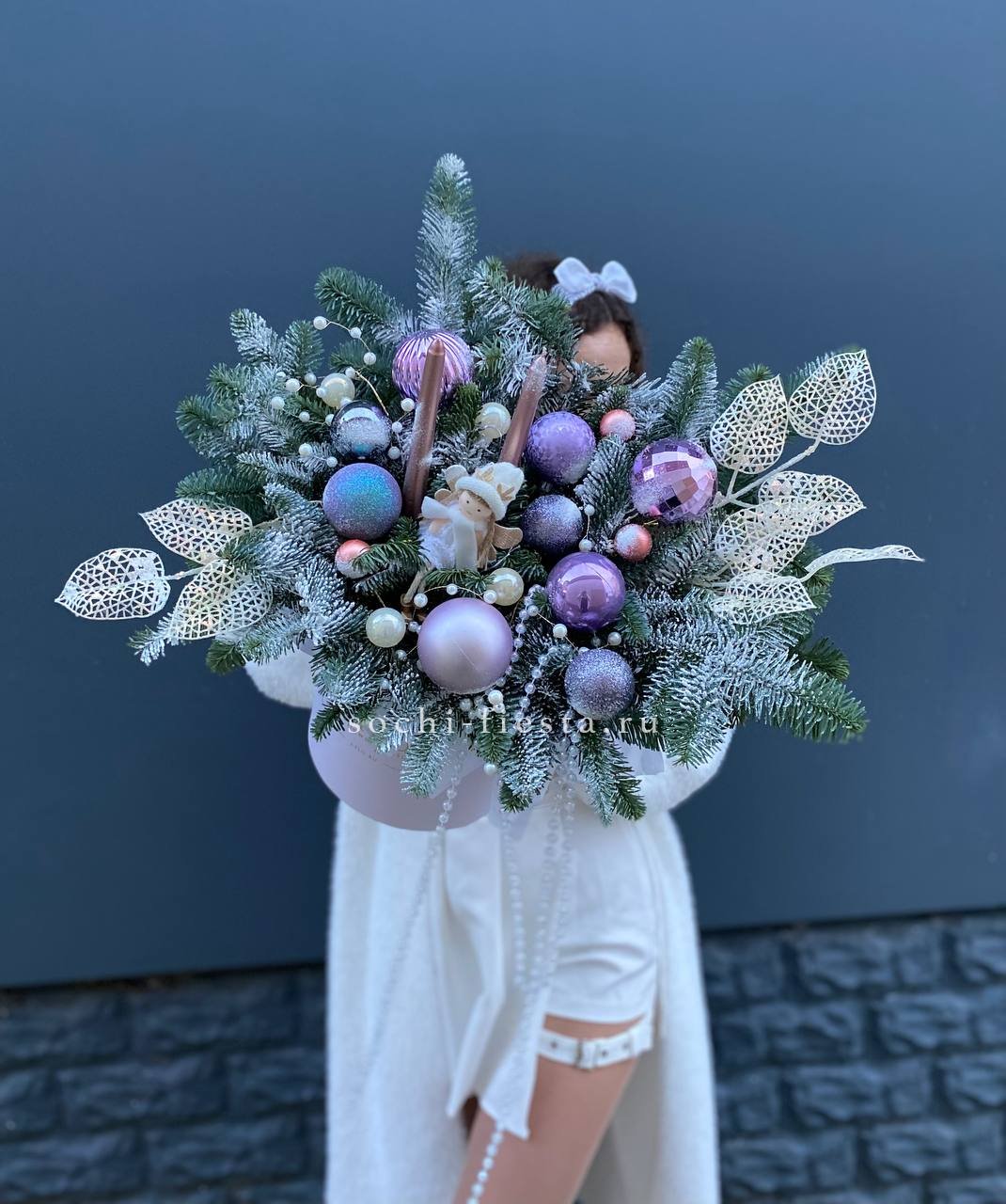 нобилис, цилиндр, оазис, свечи, новогодние игрушки, декор ВНИМАНИЕ! Готовая композиция (декор) может иметь незначительные внешние отличия от примера на фотографии.
