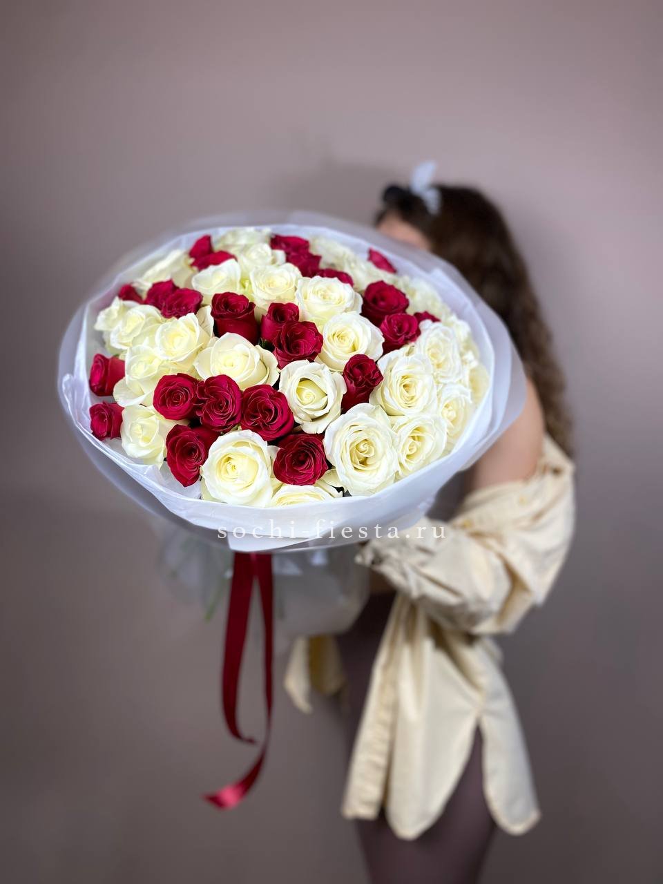 белые розы 35 шт., лента, упаковка на выборВы можете выбрать любое количество.