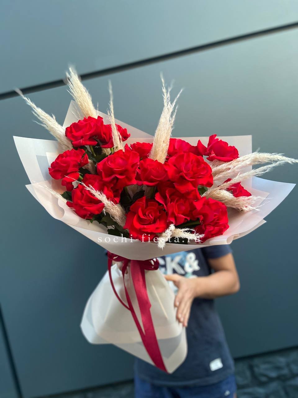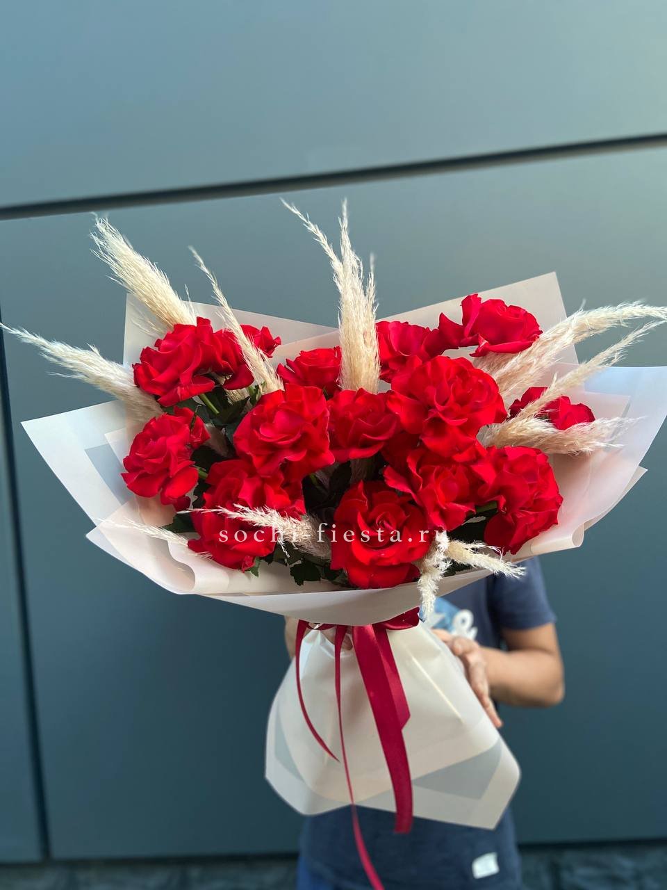 33 красных роз, лента, дизайнерская упаковка Вы можете выбрать желаемое количество цветов данном в букете.
