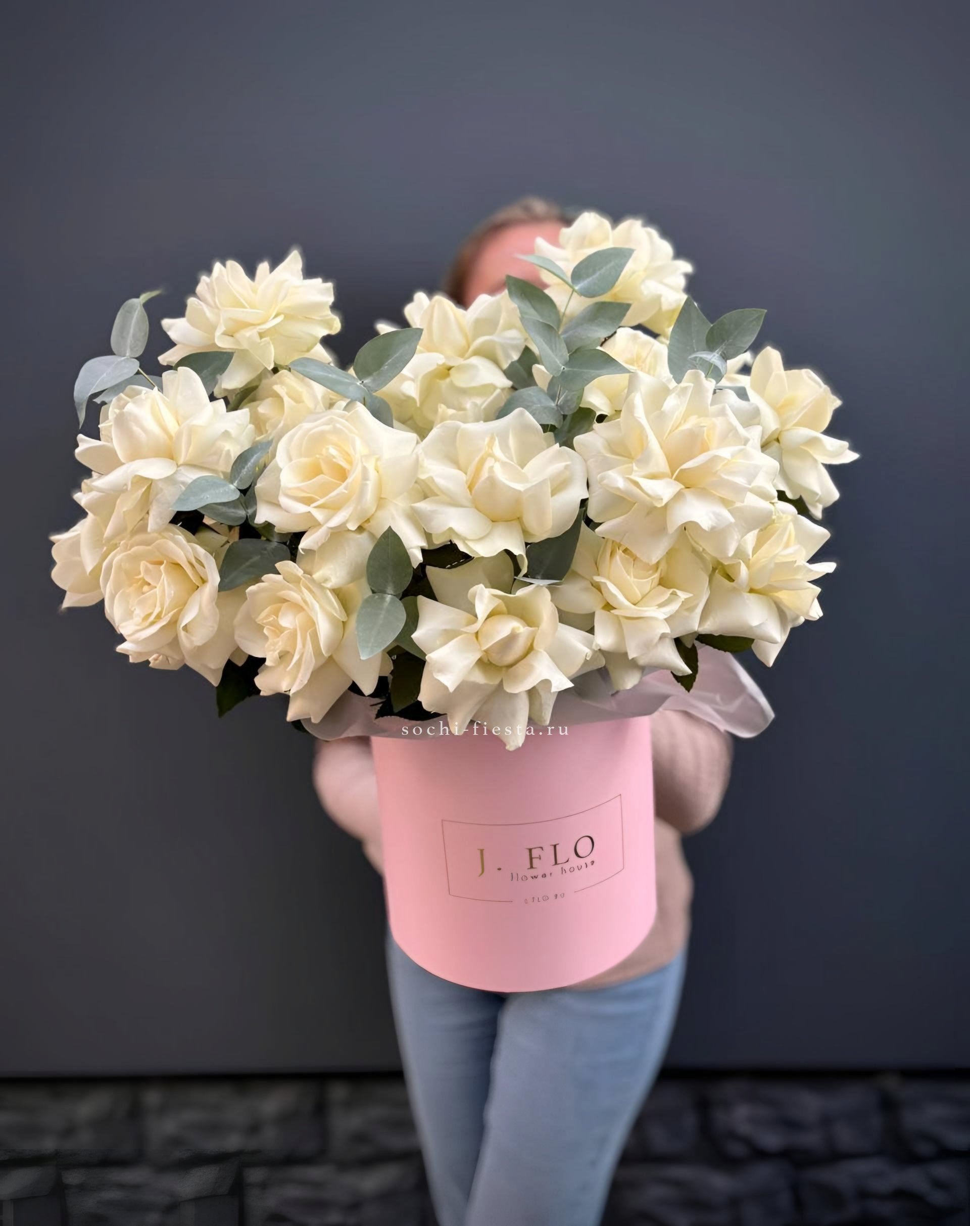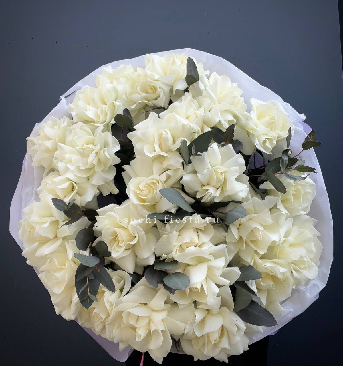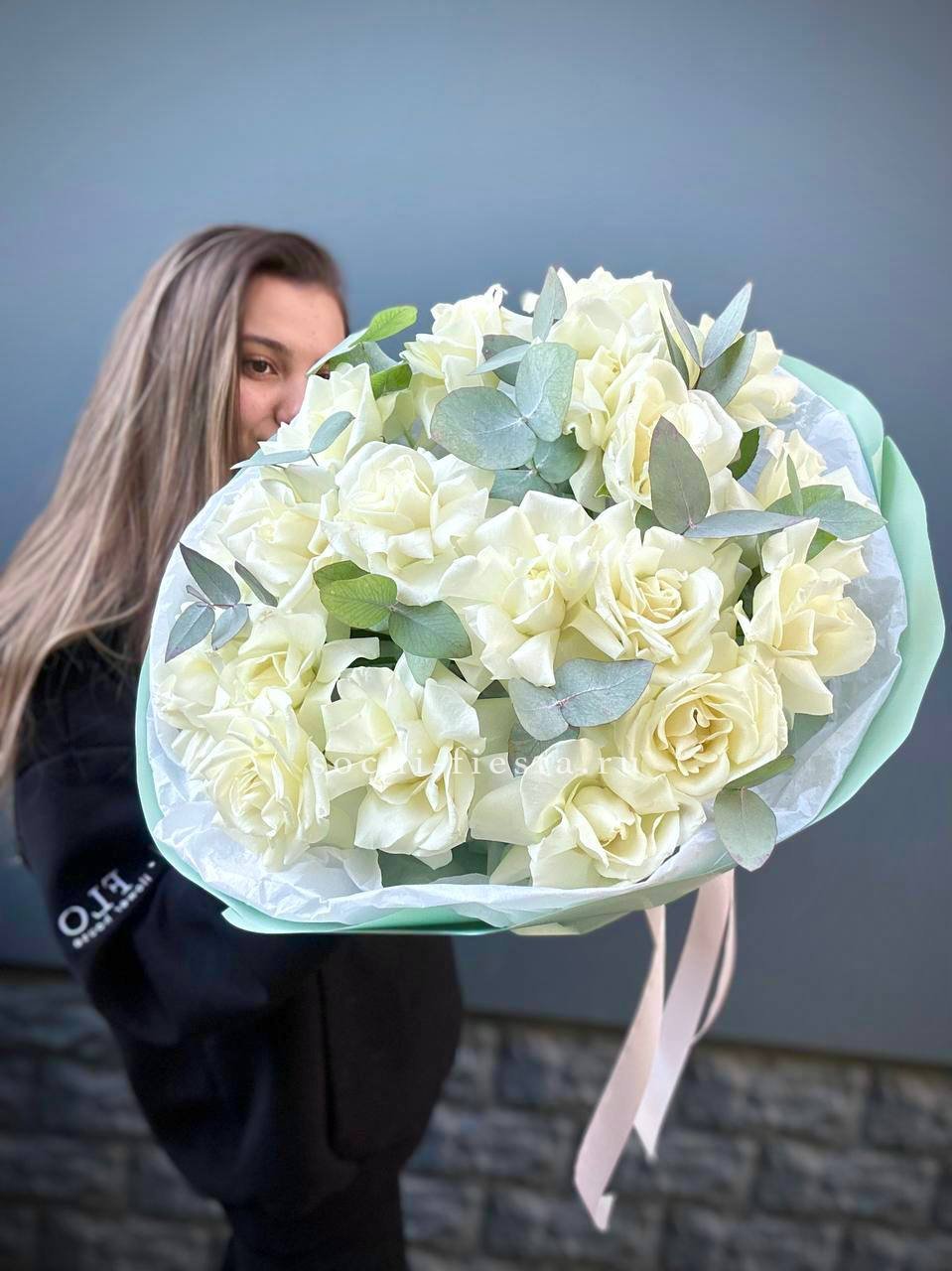 вывернутые розы - 19 шт., эвкалипт - 1шт., лента, авторская упаковка.